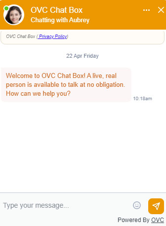With OVC Chat Box, you can customize the design of the chat box to match your website, logo or brand. We will work with you to select colors, images and wording, as well as size and placement on your website.